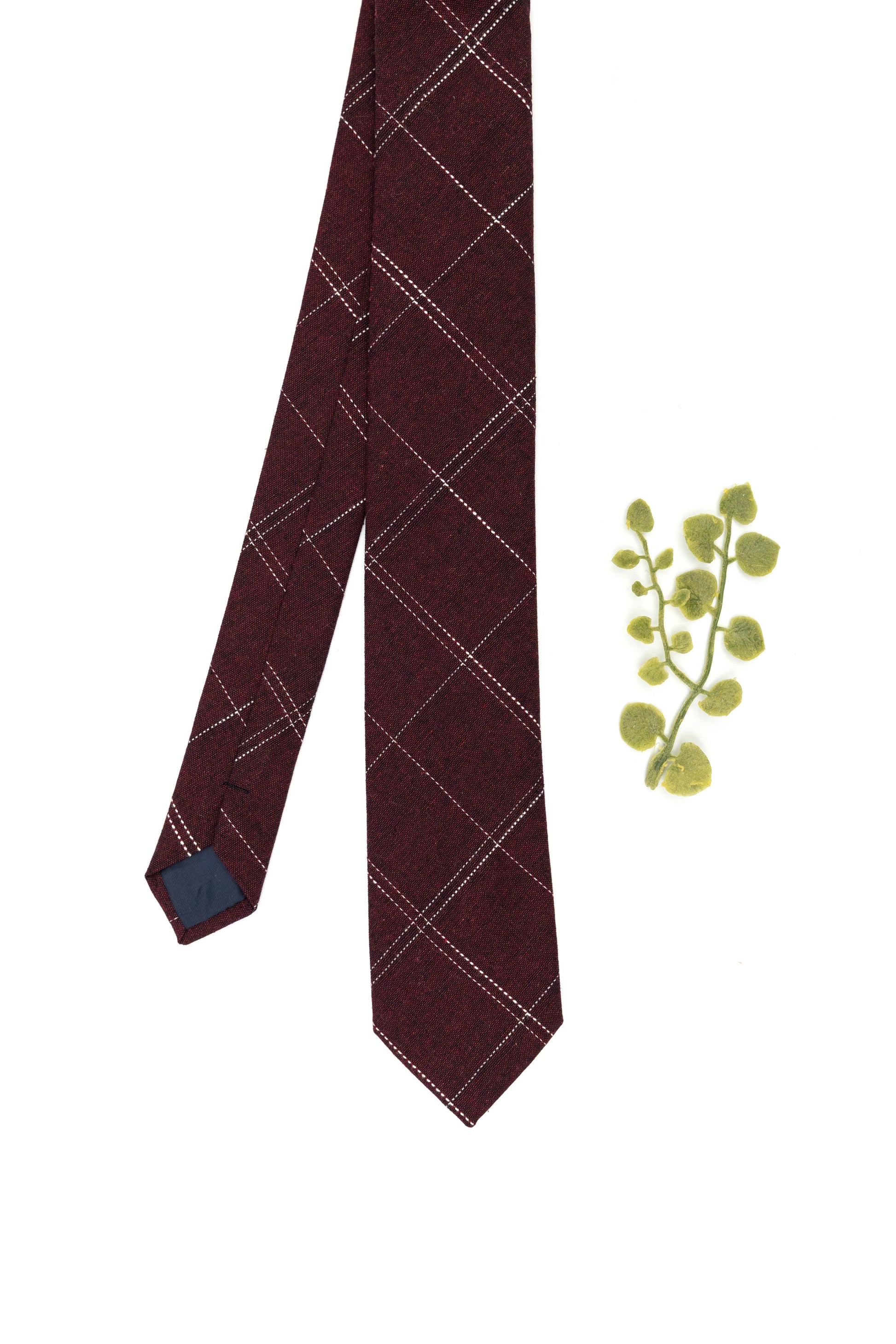 The Jax Tie features a rich burgundy base with a clean windowpane pattern that adds sharp, modern structure. It’s bold, polished, and an easy standout for holidays, photos, or any dressed-up moment.