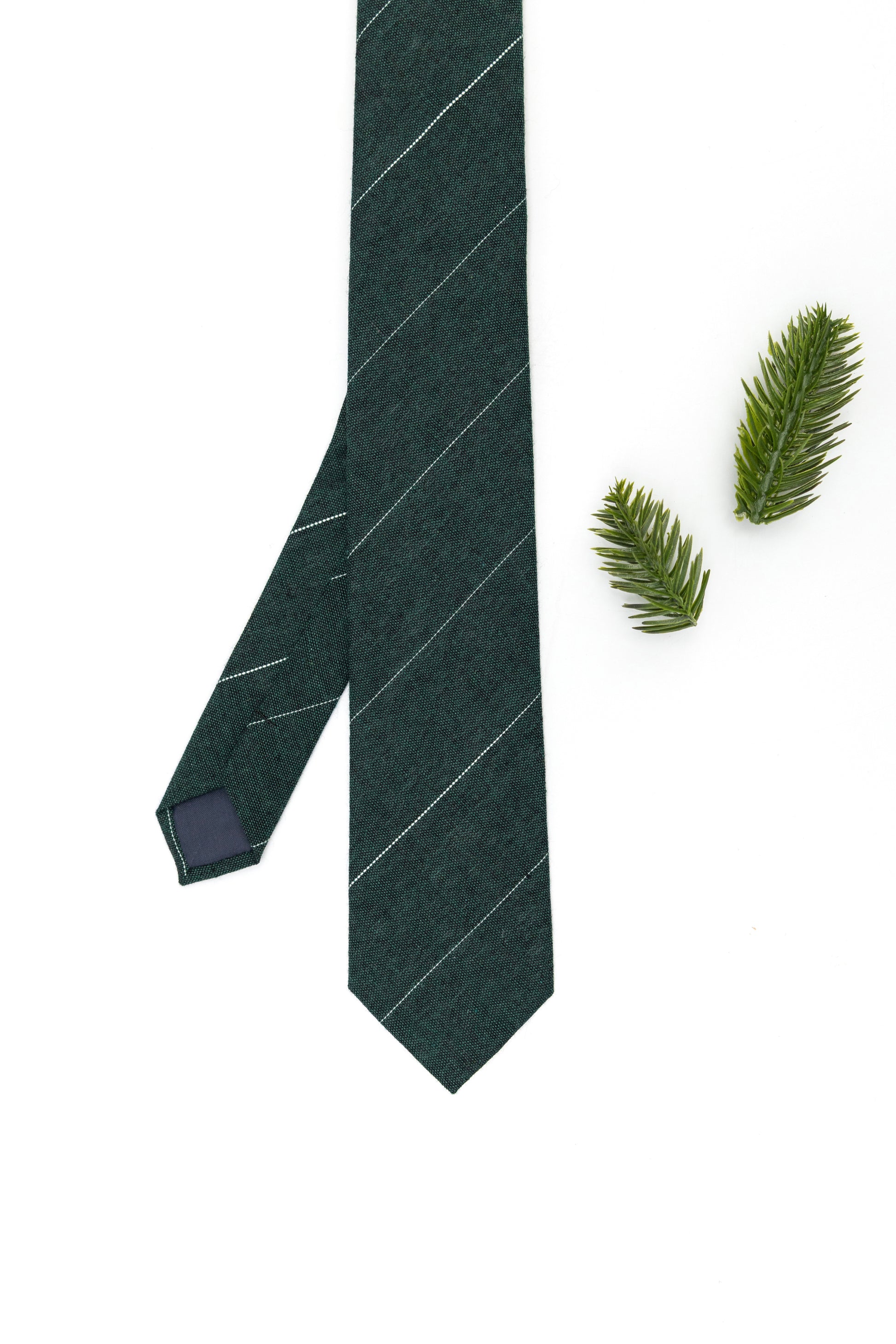 The Maddox Tie features a deep forest green base with subtle diagonal striping that feels modern, sleek, and timeless. Its rich color makes it perfect for winter, family photos, church, and holiday events.